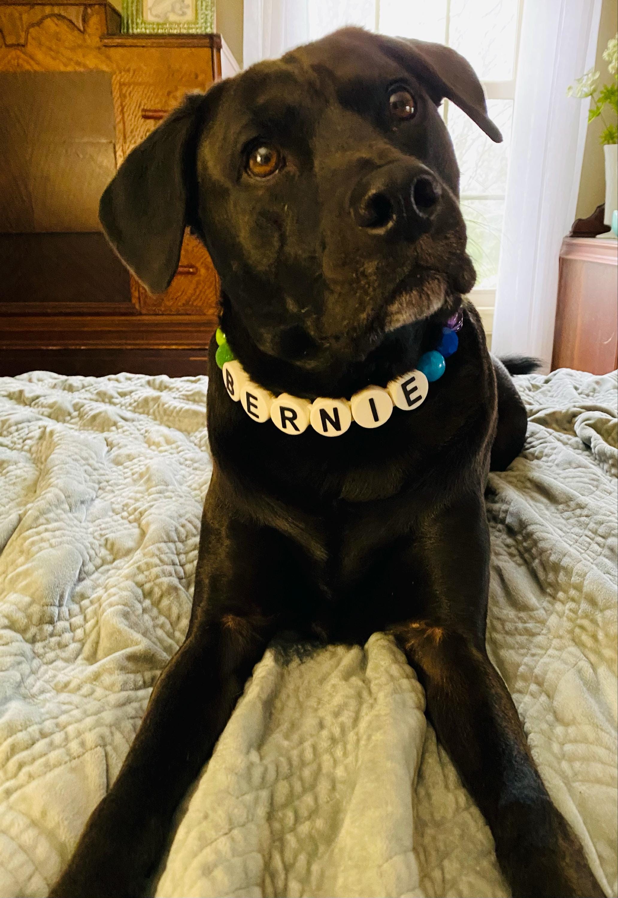 Each collar is designed for comfort and durability, expertly strung on plastic-coated stainless steel wire and connected to a heavy-duty nylon strap. The adjustable length allows for a perfect fit, making it suitable for dogs of all sizes. Personalize it with your dog's name for a touch of individuality.